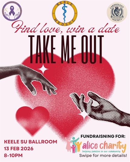 The TakeMeOut Fundraiser is back!!! Keele Medical x Oncology x Cardiology society are teaming up to fundraise for Alice Charity, a local charity that supports families living in poverty around the Stoke Area.
