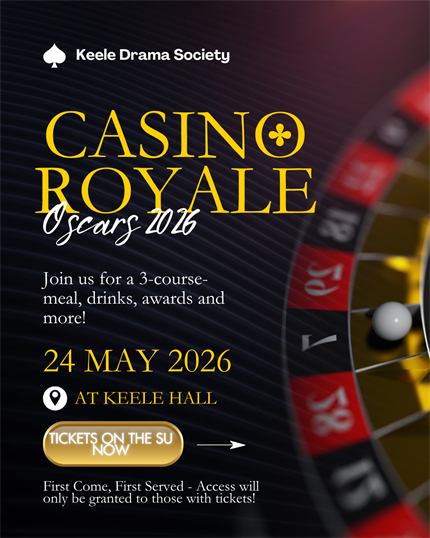 Join us at Keele Hall for our Oscar's 2026 event - Casino Royale. Tickets available here on the SU website - first come first served! Please keep evidence of tickets to gain access to the event!